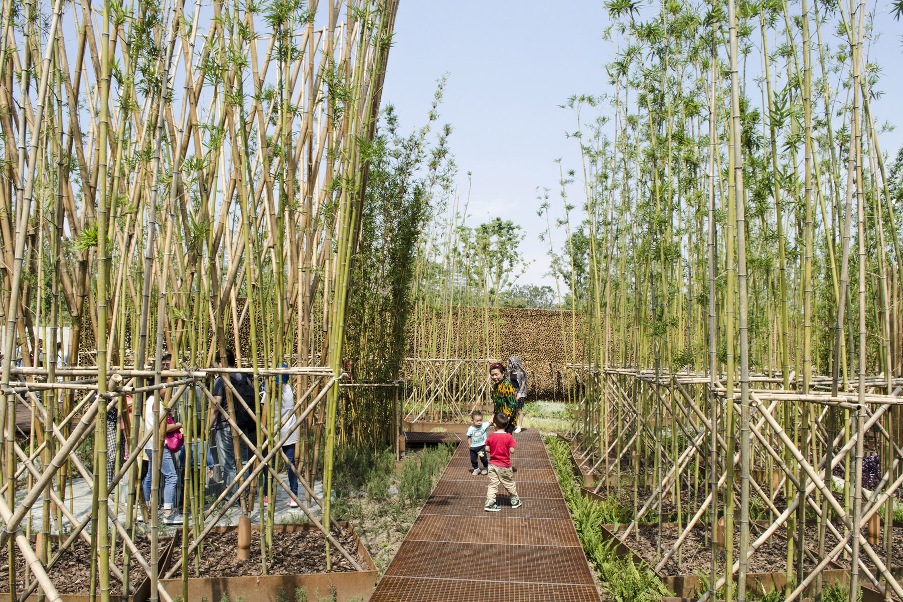 Der Bambusgarten verbindet Symbole der chinesischen und französischen Kultur. So entsteht ein Raum, der Sinne und Emotionen anregt und gleichzeitig eine intellektuelle und kulturelle Erfahrung beider Kulturen ermöglicht. Im mittleren Teil wurde der Boden abgesenkt, was die Suche nach reinem Wasser symbolisiert. Gabionenwände stehen für geologische Schichten. Weit weg von den Hintergrund- geräuschen der Stadt schafft der Garten, der an traditionelle chinesische Garten- höfe erinnert, ein sehr angenehmes Mikroklima in den trockenen und heißen Sommern von Wuhan.