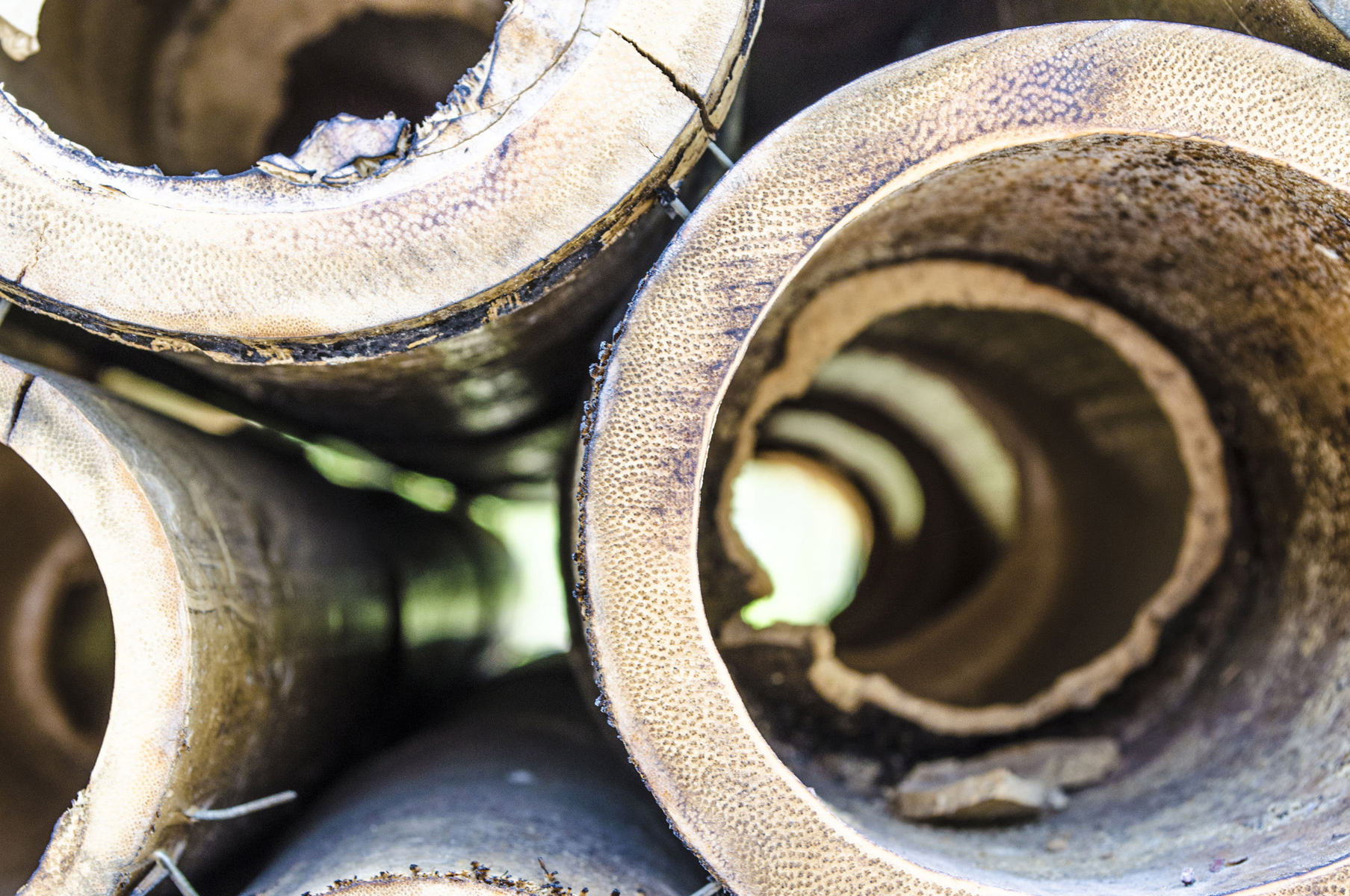 Das sanfte Licht, die dichten Bambuspflanzen und das Wasser verdichten sich an diesem Ort zu einer ganz besonderen Atmosphäre. Wege mit Trittsteinen aus Metall und Steinen schlängeln sich hier und laden zur Entdeckung der Langsamkeit ein.