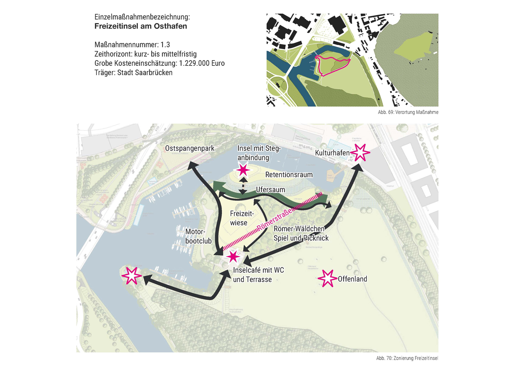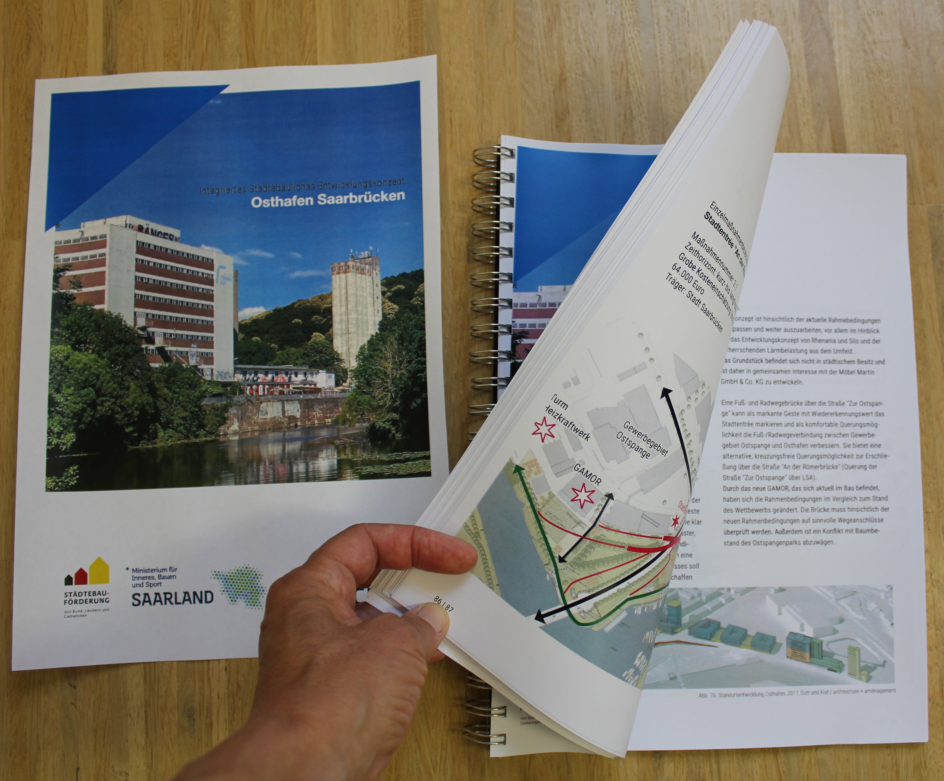 Das Integrierte Stadtentwicklungskonzept definiert Leitlinien für eine zukunftsorientierte Weiterentwicklung von Städtebau, Freiraum und eines funktionalen Erschließungskonzepts für das Umfeld des Osthafens. Ziele dabei sind die Verbesserung der Freiraumnutzung und -verbindung entlang der Saar, ein Sichtbarmachen der römischen Geschichte sowie eine städtebauliche Aufwertung des gesamten Gebiets.