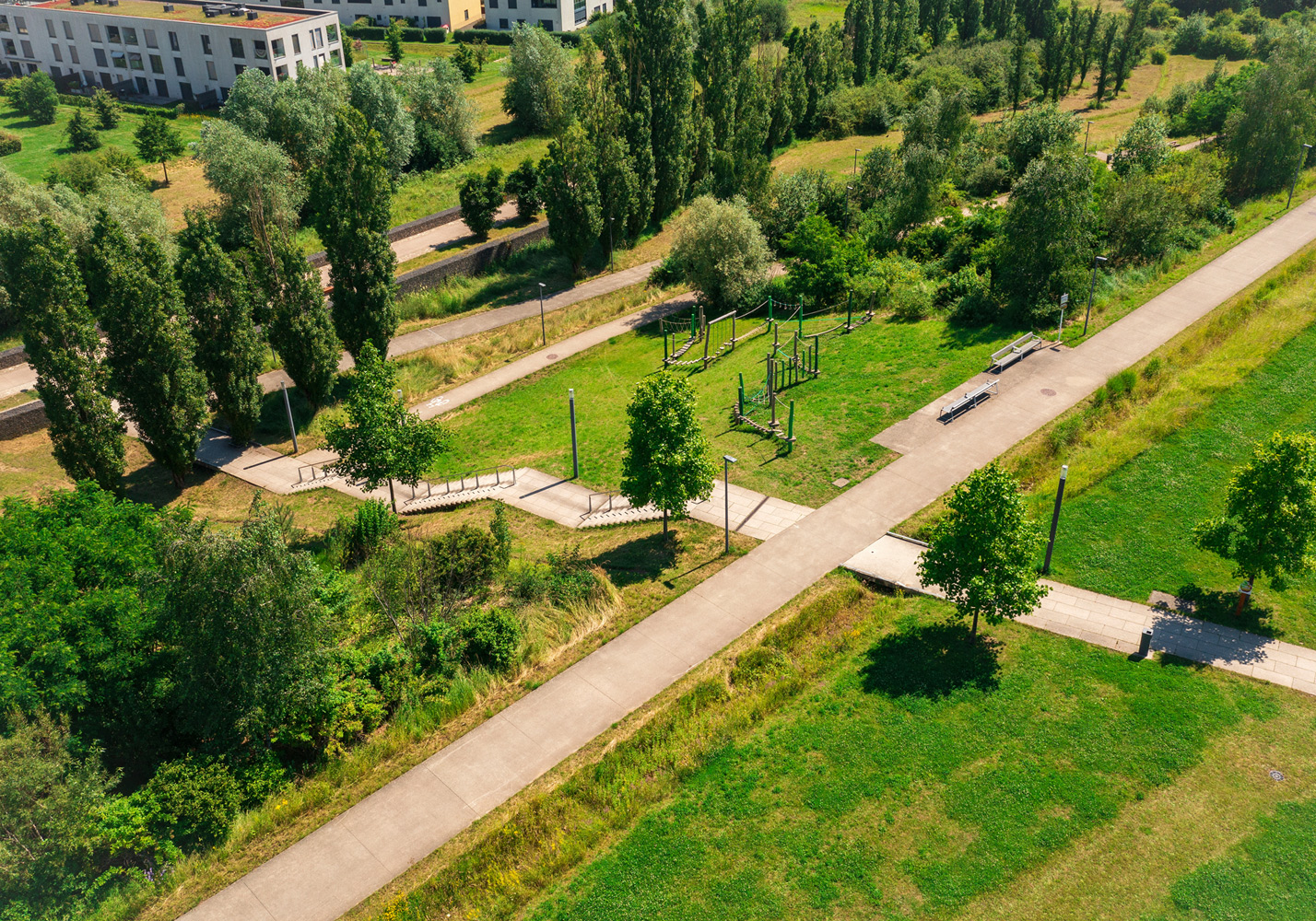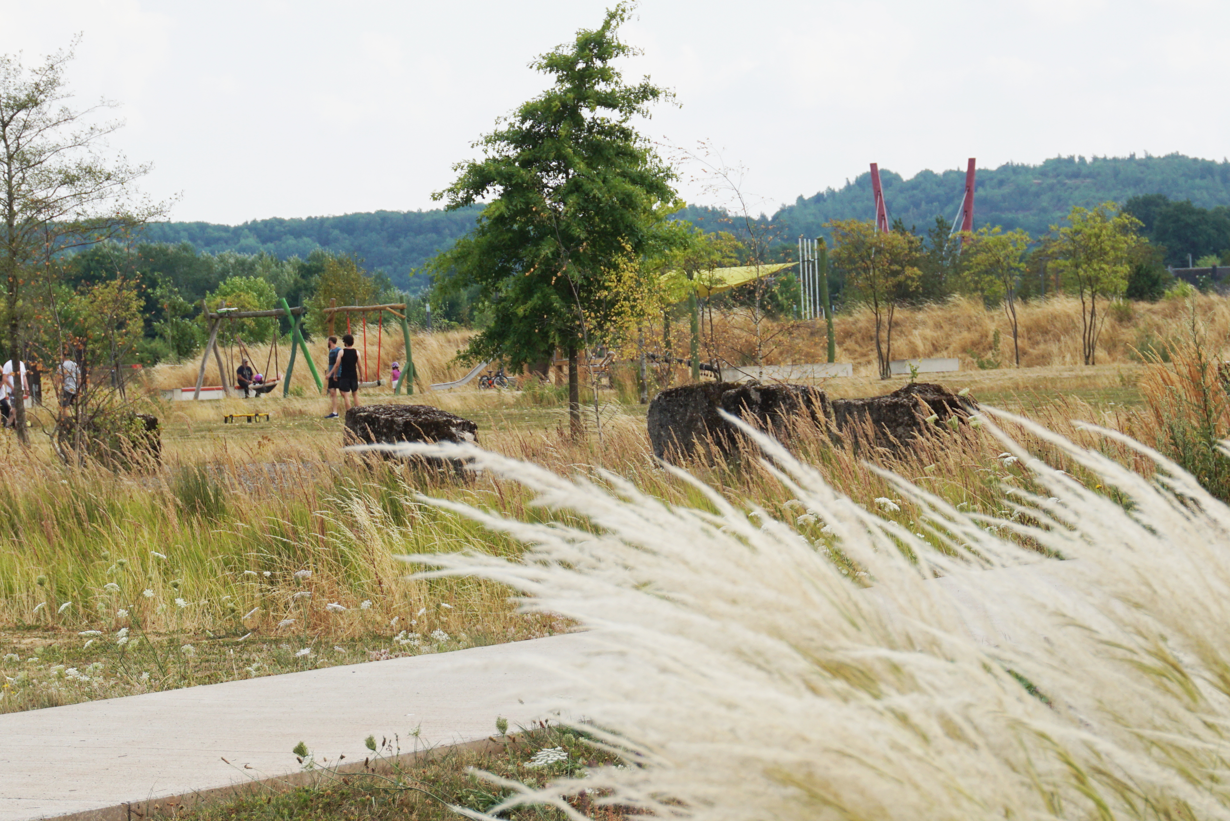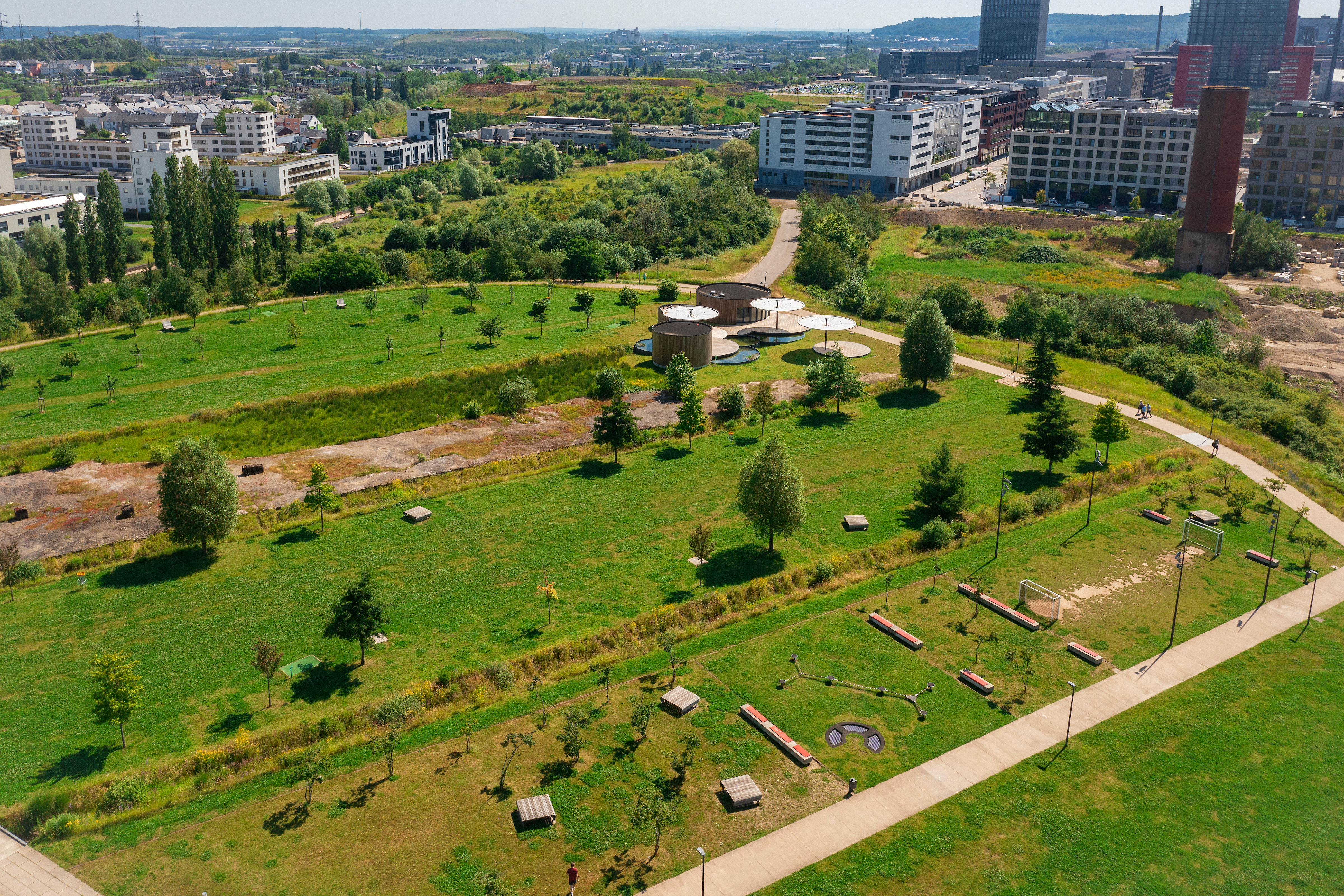 Auf einem ehemaligen Standort der Stahlindustrie wird der Park Belval zum verbindenden Element zwischen den neu entstehenden Quartieren. Gleichzeitig verbindet er die umliegenden Freiräume, wodurch ein weitläufiges Grünflächen-system entsteht, das vielfältige Nutzungsmöglichkeiten bietet. Um einen Park von hoher Qualität zu schaffen, werden die bestehenden geo-morphologischen Merkmale des Geländes auf klare und selbstverständliche Weise neu strukturiert. Dabei bedingt die vorgefundene geologische Situation ein neues Entwässerungskonzept. Indem die Wege des Wassers durch den Park sichtbar gemacht werden, wird ihm in den Augen der Besucher eine neue Bedeutung zugemessen.